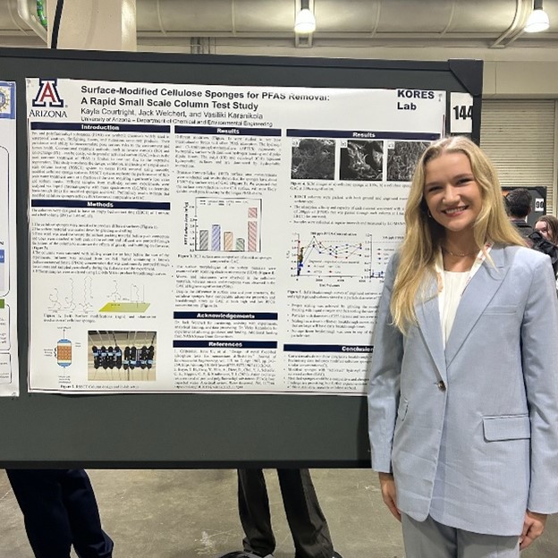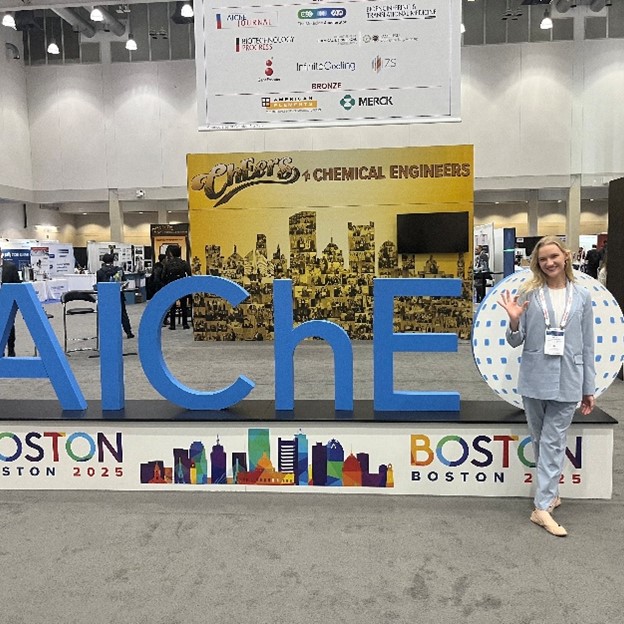 Congratulations to Kayla Courtright (UG student in Chemical Eng that will be an MS student in our group next year) for presenting her poster at the AIChE Annual Student conference in Boston, November 2025. Kayla talked about her work Surface-Modified Cellulose Sponges for PFAS Removal: A Rapid Small Scale Column Test Study. Kayla received multiple travel grants to attend a present at the conference. Kudos Kayla!!