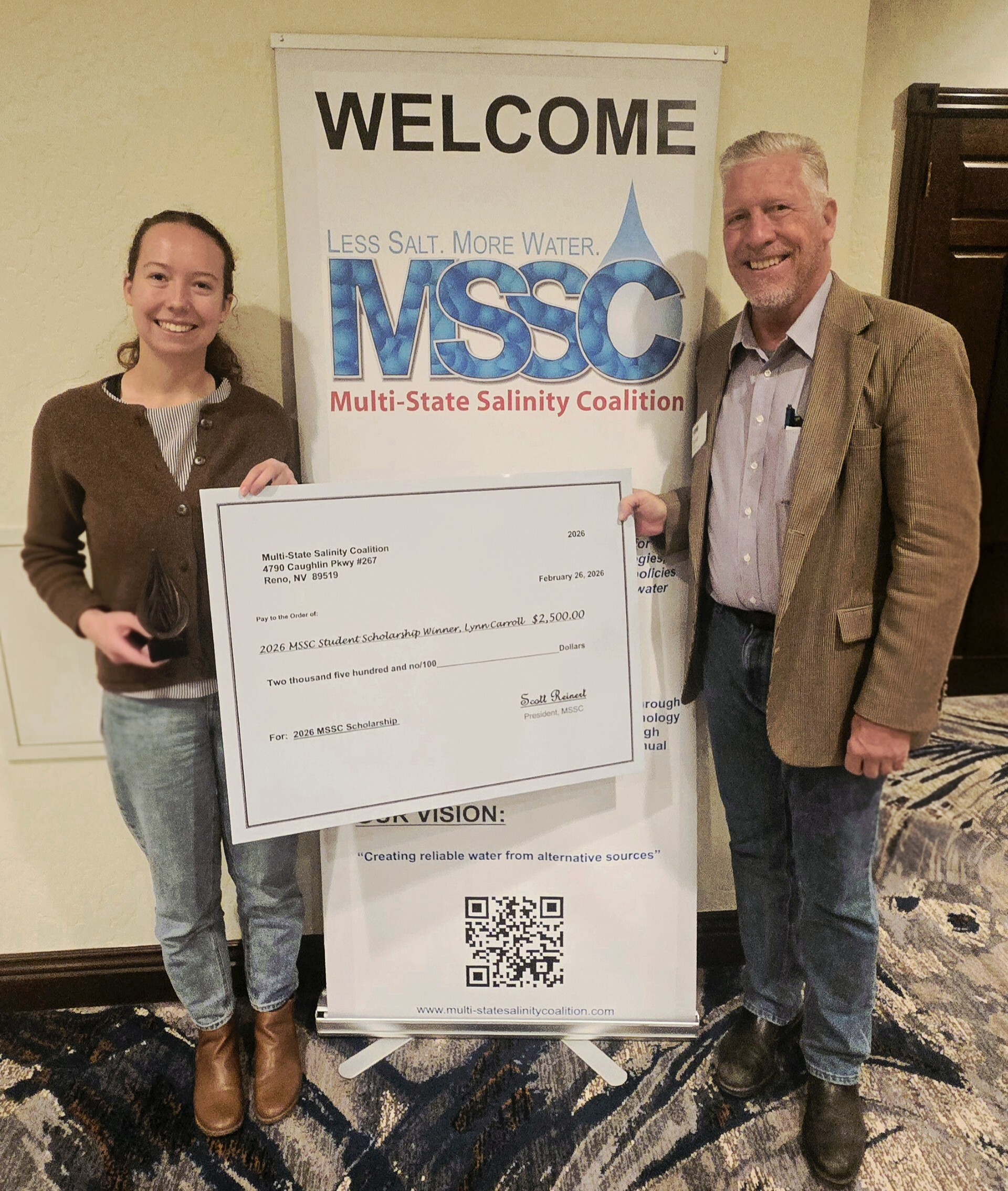 Congratulations to Lynn Carrol on winning the 2026 Multi-State Salinity Coalition and Future Industry Leaders Scholarship. This is the first time this scholarship has been awarded to a University of Arizona student.
